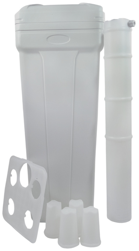 Состоит из корпуса с крышкой, солевой решётки, рассольной шахты, внутри которой смонтирована всасывающая система, шариковый отсечной клапан и штуцер для соединения солевого бака с управляющим клапаном умягчителя.